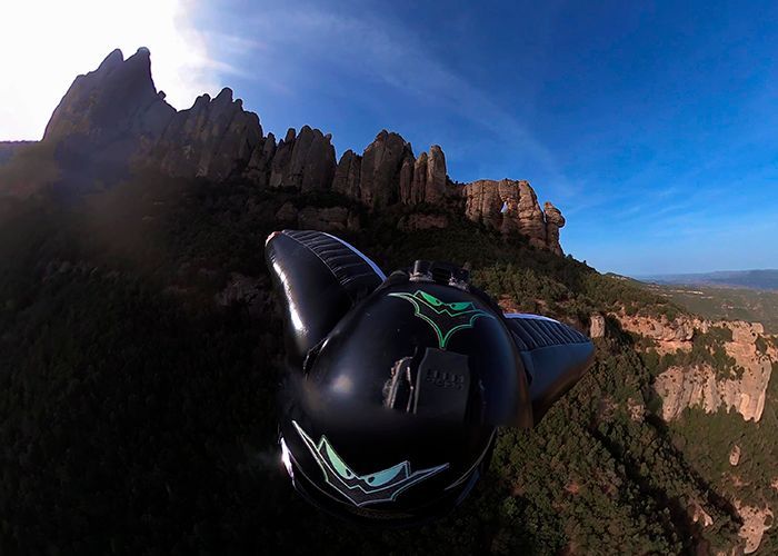 Espectacular salt per sobre se les muntanyes de Montserrat, un repte perillós assolit. Direcció: Armando Orquendo.