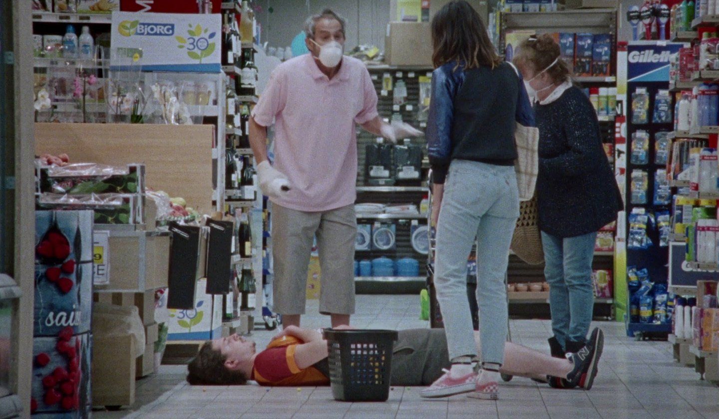 En plena situació de pandèmia pel coronavirus, els clients d'un supermercat han de socorre a un jove que pateix un ofeg.
